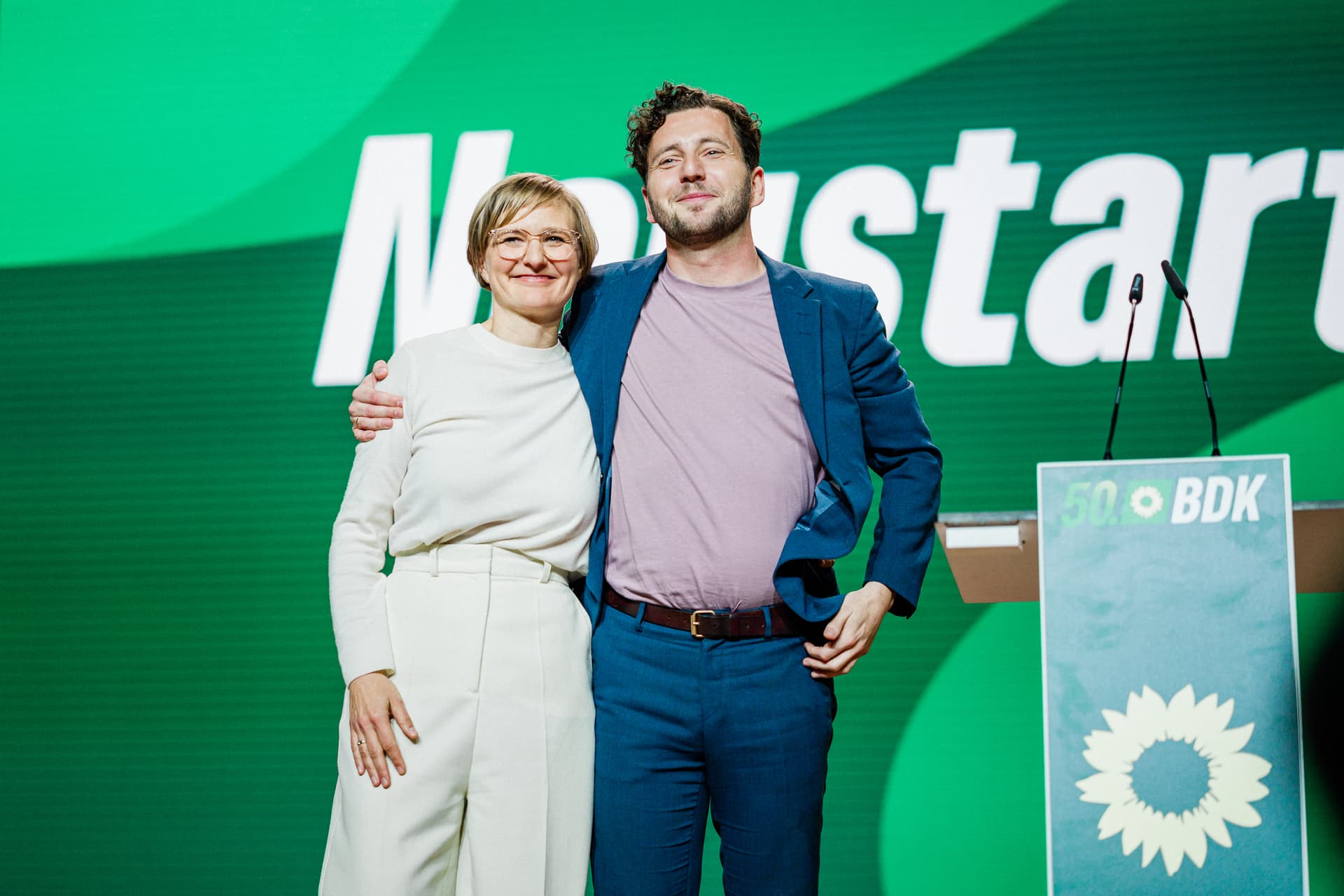 Franziska Brantner und Felix Banaszak sind die neuen Parteivorsitzenden von BÜNDNIS 90/DIE GRÜNEN. Sie wurden auf dem 50. Parteitag in Wiesbaden mit großer Mehrheit der Delegierten gewählt. Zudem wurde Pegah Edalatian als neue politische Geschäftsführerin, Manuela Rottmann als Bundesschatzmeisterin und Sven Giegold als stellvertretender Vositzender gewählt. Heiko Knopf wurde ebenfalls als stellvertretender Vorsitzender wiedergewählt. Herzlichen Glückwunsch zur erfolgreichen Kandidatur!